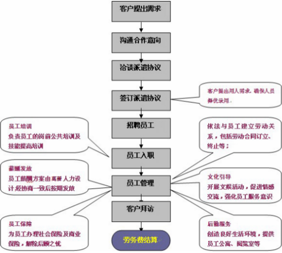 4.2转移派遣:有劳务派遣需要的企业自行招募、选拔、培训人员,再由派遣公司与员工签订《劳动合同》,并由派遣公司负责员工的报酬、福利、绩效评估、处理劳动纠纷等事务。