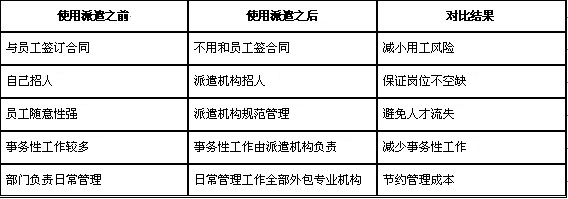4.4试用派遣:这是一种新的派遣方式,用人单位在试用期间将新员工转至派遣公司,然后以派遣的形式试用,其目的是使用人单位在准确选才方面更具保障,免去了由于选拔和测试时产生的误差风险,有效降低了人事成本。