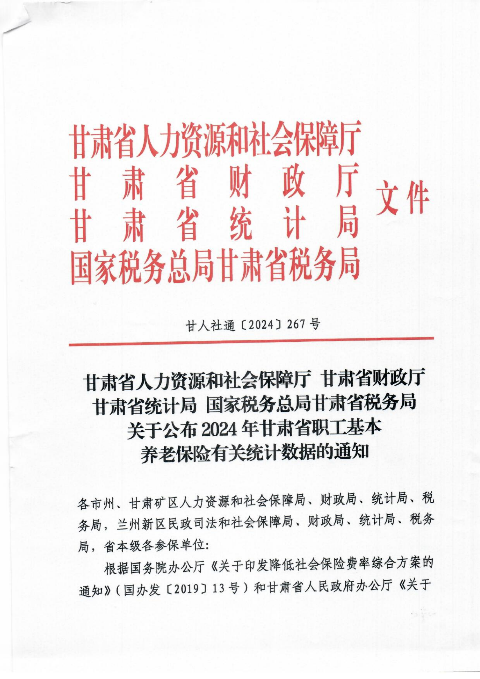 VSport体育公布2024年甘肃省职工基本养老保险有关统计数据的通知