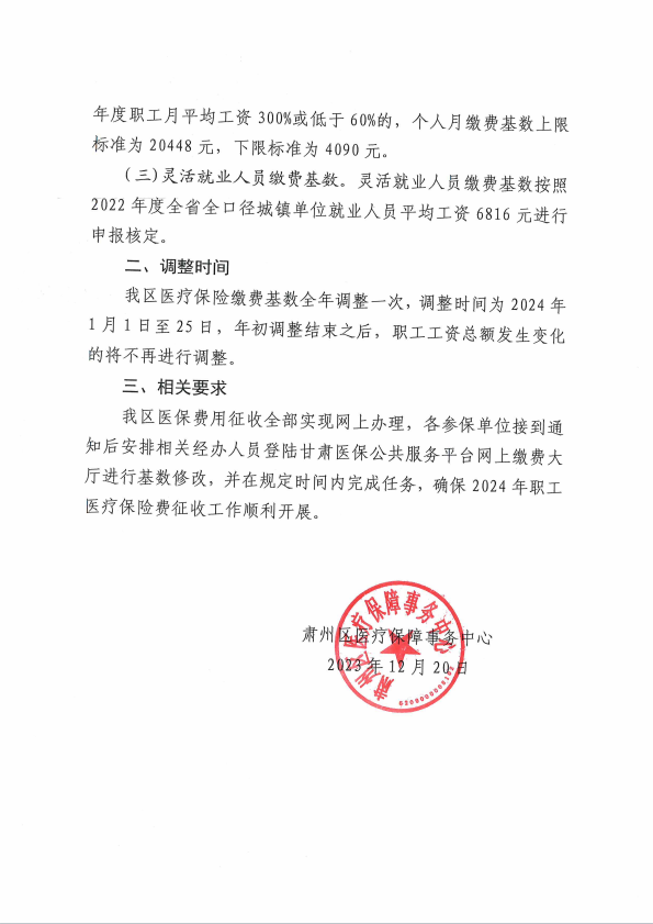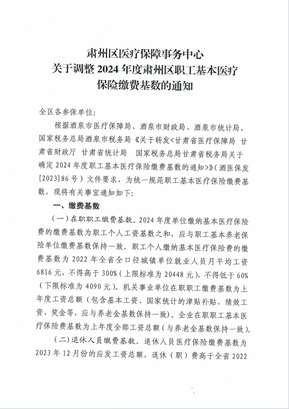 VSport体育调整2024年度肃州区职工基本医疗保险缴费基数的通知
